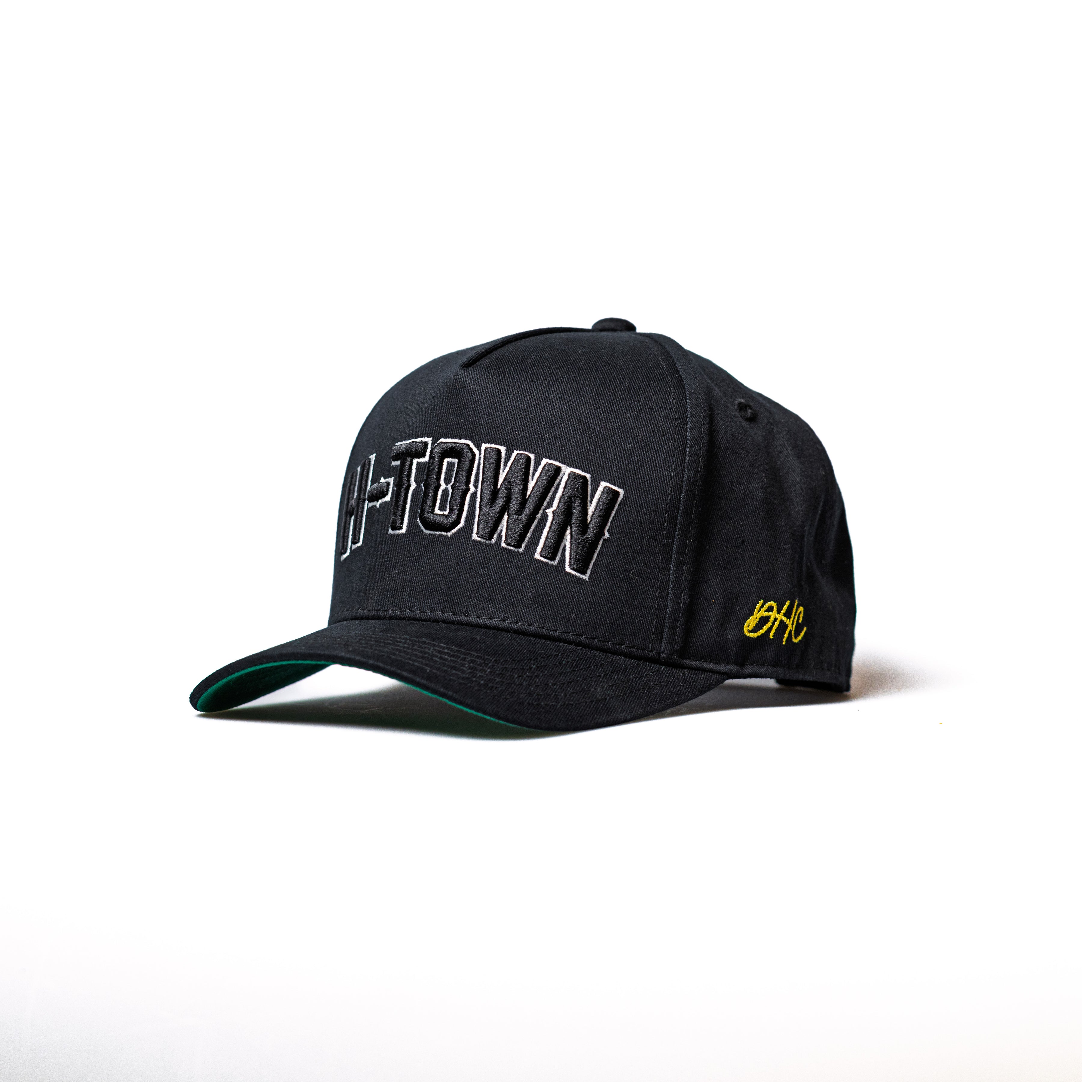 H-TOWN | Black Monochrome with White | Pre-curved Snapback