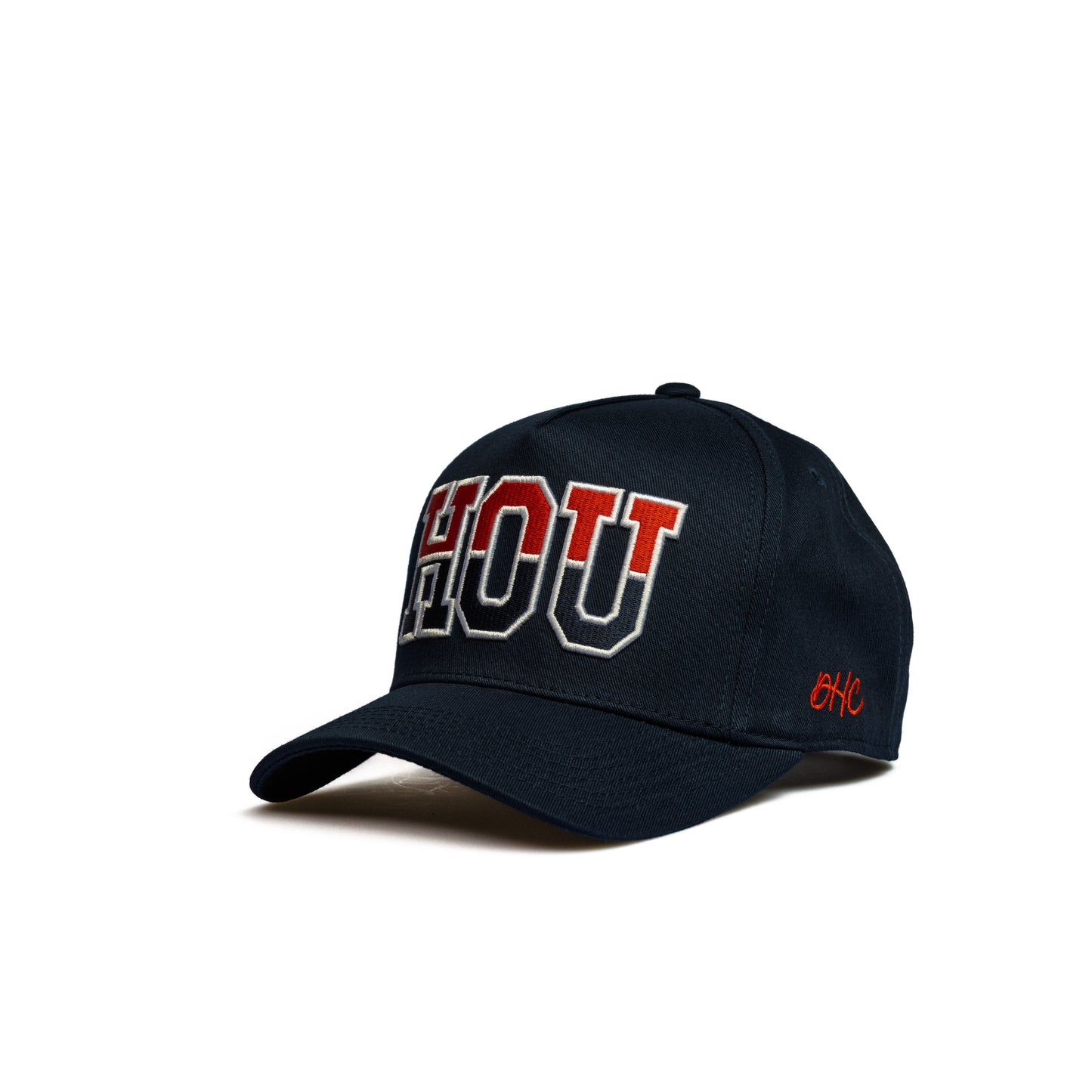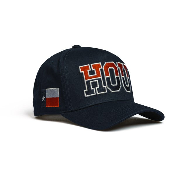 HOU | Navy + Red/White with State of Texas Themed | 100% Cotton Pre-Curved Snapback
