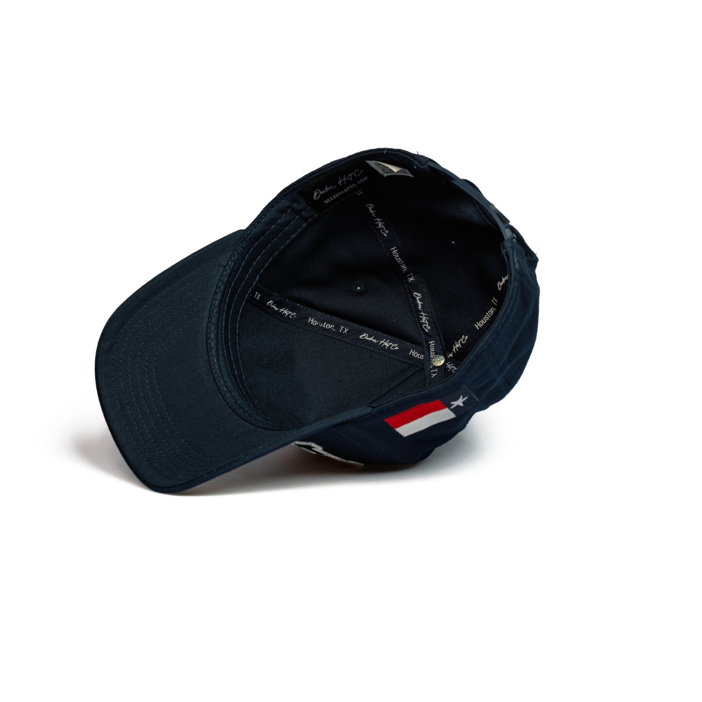 Featuring HOU front panel, State of Texas Flag and color scheme, State of Texas side panel, and Decker Hat Co. logos.