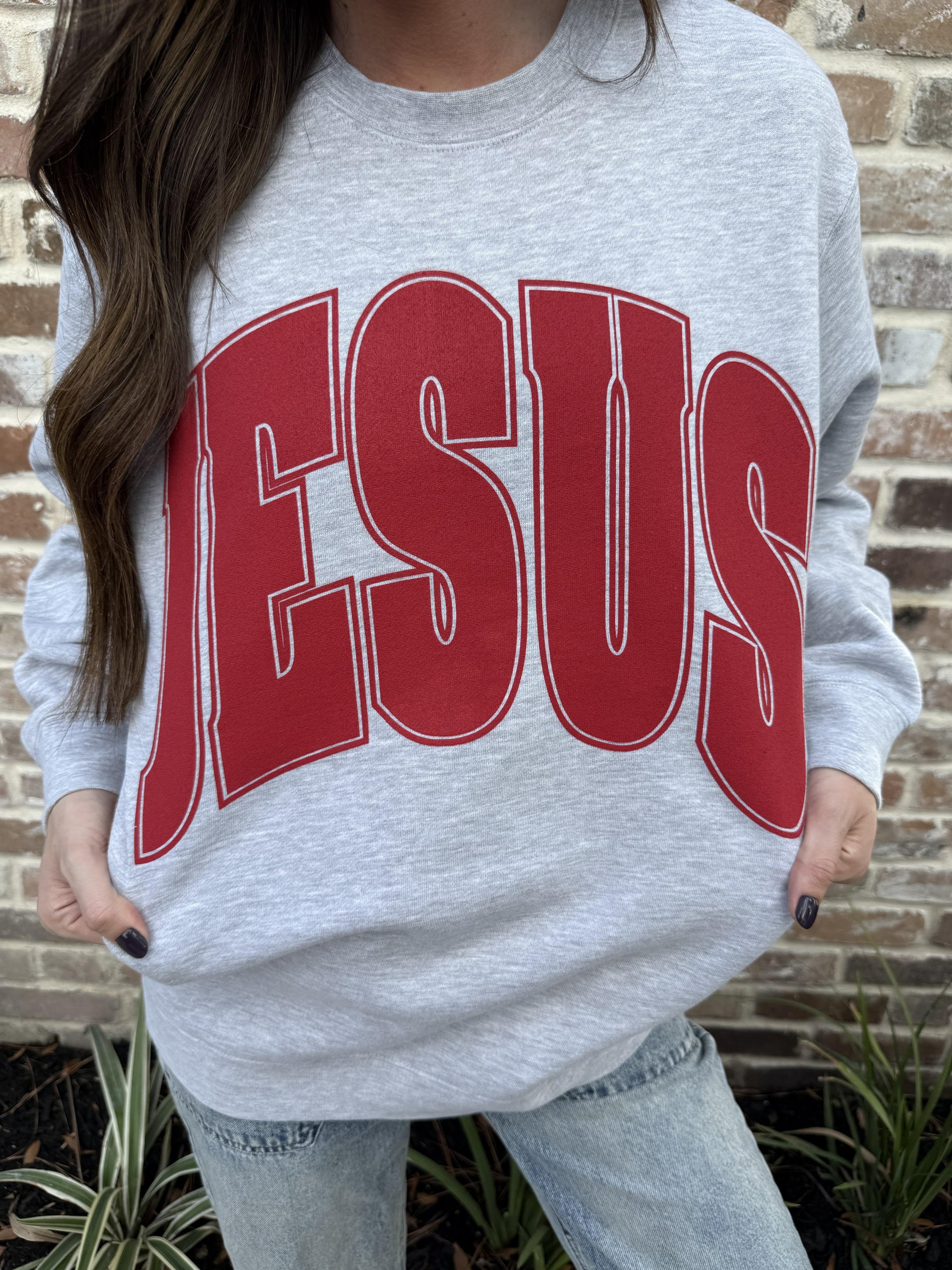 JESUS Sweatshirt | Gray with Red | Christmas Collection - LIVE NOW